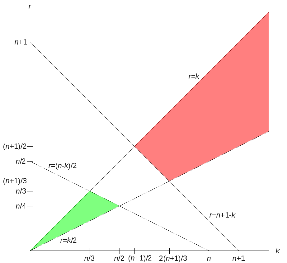 -1$ and $0\leq k-r\leq r$, which would make $k>n/2$). The following